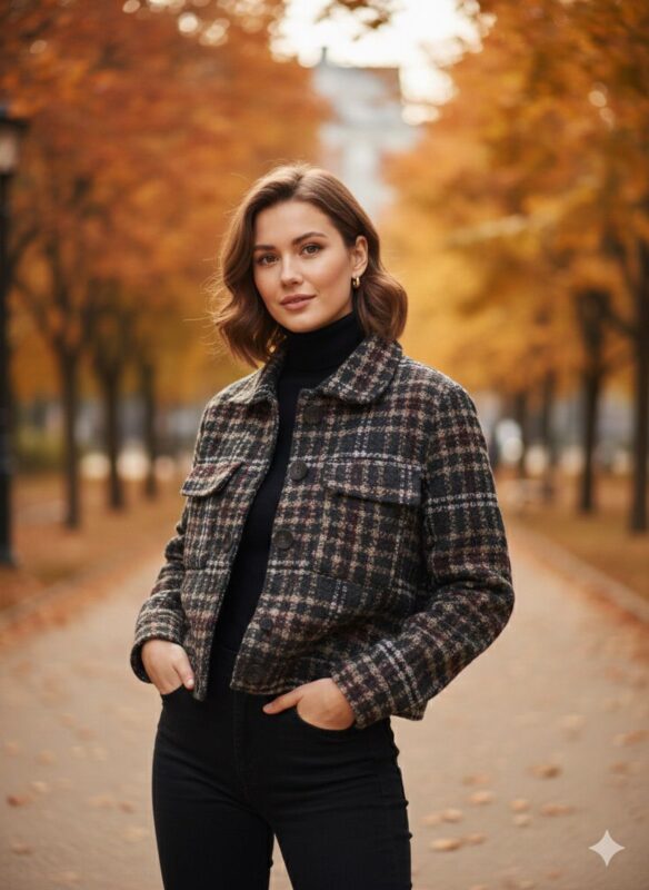 Women Checkered Woollen Winter Jacket