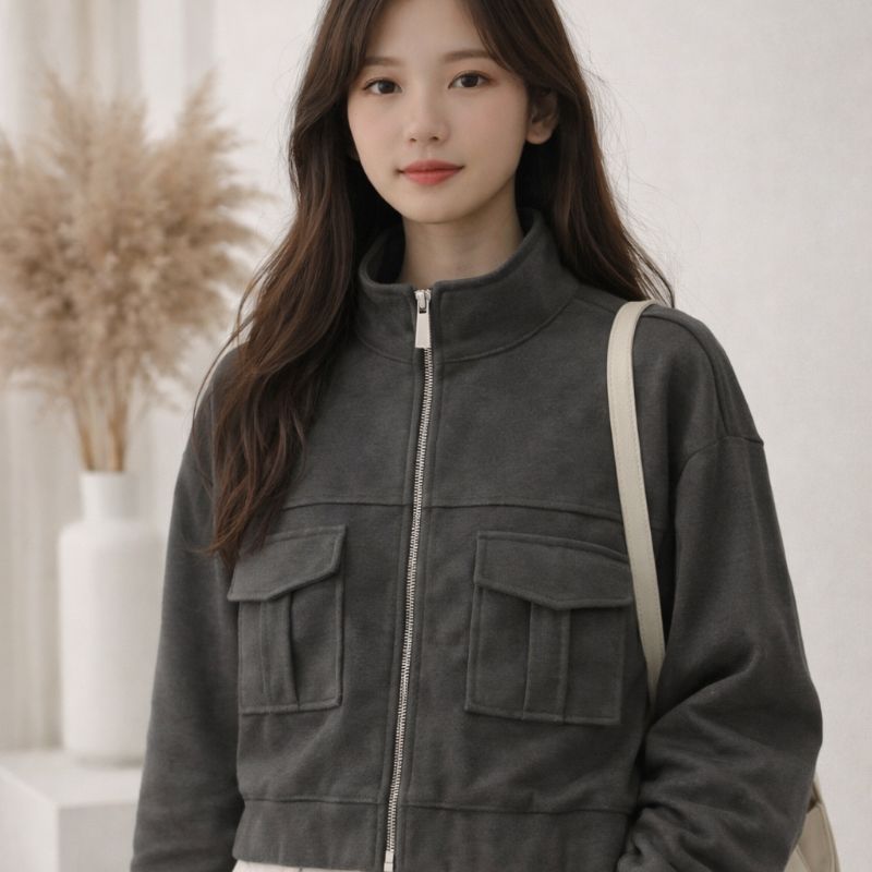 Women Trendy Korean Style Collared Sweatshirt